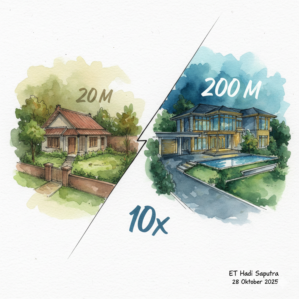 Dulu batas harga maksimal Rp20 miliar. Angka itu sudah besar untuk rumah layak di Jakarta, Bandung, atau mana pun. Mantan Presiden SBY dapat di Cikeas, 1.500 m². Soeharto konon tolak rumah, minta uang Rp20 miliar. Itu patokan tidak tertulis.