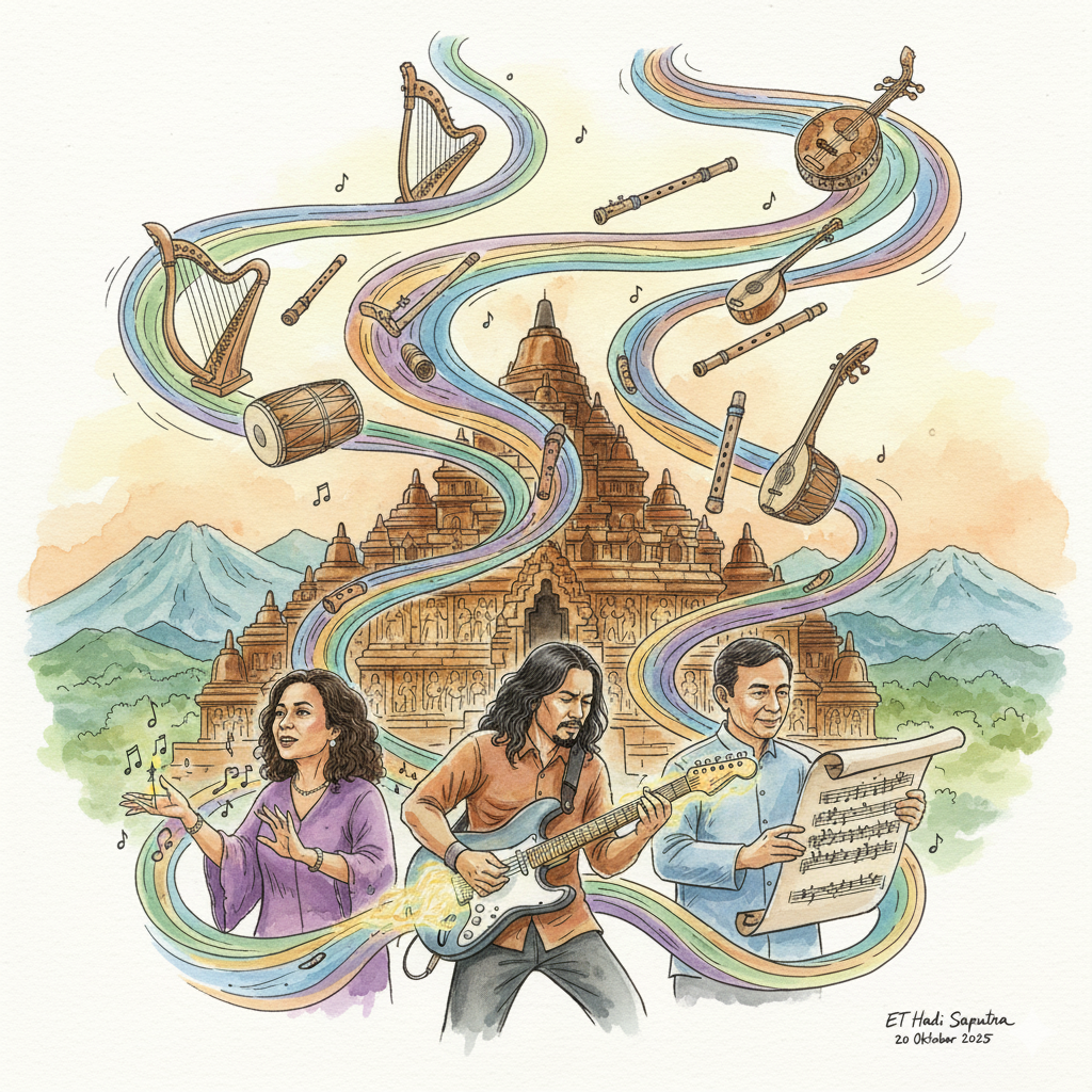 Mereka tahu, diplomasi budaya tidak cukup hanya dengan tari-tarian keliling dunia. Kita harus membunyikan peradaban kita. Borobudur harus berbunyi, dan dunia harus mendengarkan.
